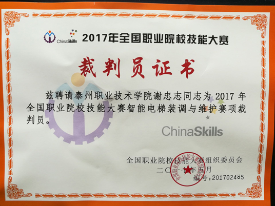 | 5月8-9日,2017年全国职业院校技能大赛高职组“智能电梯装调与维护”赛项在天津举行,共有来自全国28个省市的76支代表队参加了此项赛事的角逐。我院谢忠志老师应邀担任了该赛项的裁判,并圆满完成了执裁任务。 本次裁判组共计33人,其中企业专家5人,本科院校教师3人,职业院校骨干教师25人,谢忠志老师担任现场功能组评分组长。他以严谨的工作作风,严格的工作态度,圆满地完成了大赛工作任务,受到专家组长、裁判长和仲裁长的一致好评。 通过执裁国家级技能大赛,将进一步积累大赛实战经验,提高我院机电一体化专业和电气自动化专业的教学水平。(机电技术学院) ![]() ![]() |
