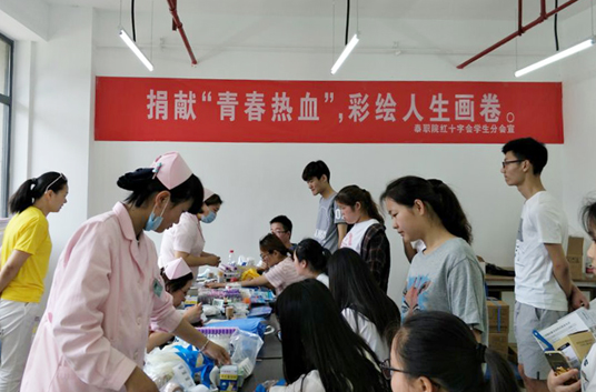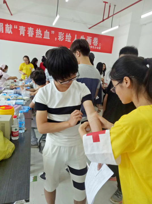 ![]() ![]() ![]() ![]() ![]() ![]() 2017年6月14日,一个特殊的日子—第十四个“世界献血者日”。由我校和泰州市卫计委、泰州市红十字会、泰州市中心血站联合主办的“献血、现在献血、经常献血”公益宣传活动,当日上午9点在我校南广场隆重启动! 活动由市中心血站站长何新主持,泰州市卫计委副主任周卫兵、泰州市红十字会副会长梅有宏、泰州职业技术学院副院长钟文乐、泰州市人民医院副院长吴健、泰州籍著名书画家俞进先生、高新区爱心公益联盟卢大成理事长及泰州市无偿献血志愿者协会理事单位和我院红十字志愿者代表参加。 钟院长说,今天是第14个世界献血者日,这是广大献血者的节日。今年活动的主题是“我能做什么?”,就是要号召社会各界尽己所能、力所能及地参与到献血工作中来,不管是进行无偿献血,还是献血知识宣传,哪怕是转发一条朋友圈,为献血者点一个赞,都是在为无偿献血事业贡献一份力量。 与会领导向我校3名同学在内的泰州市无偿献血工作先进个人颁发荣誉证书。 最后由我院“献血捐髓”志愿服务队王希祖同学宣读倡议书,向全社会发出“献血、现在献血、经常献血”,人人争做热血青年的倡议! 泰州籍著名书画家俞进代表泰州公益组织向学院赠送了其书法作品《大爱无疆》。 启动仪式结束后,在我院大学生活动中心开展了献血及宣传活动。我院红十字会组织了66名志愿者参与此次活动,向广大师生发放献血宣传资料,号召大家开展无偿献血。据悉截止下午四点,我院已有256名青年学生成功献血,献血总量56000CC,他们用自己的实际行动践行了“人道、博爱、奉献”的红十字精神,贡献了自己的青春力量。 |