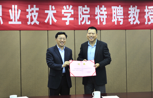 陈士宏为蒋志君博士颁发特聘教授聘书,徐庆国代表学院与蒋志君博士签订聘任协议。