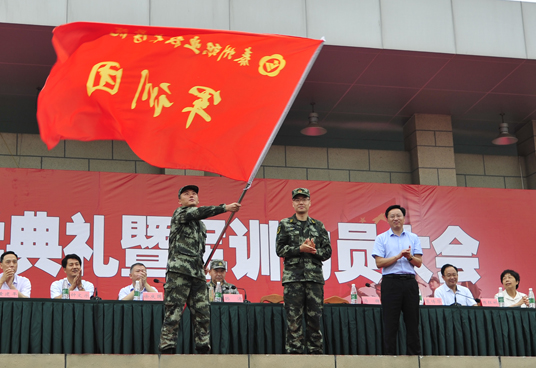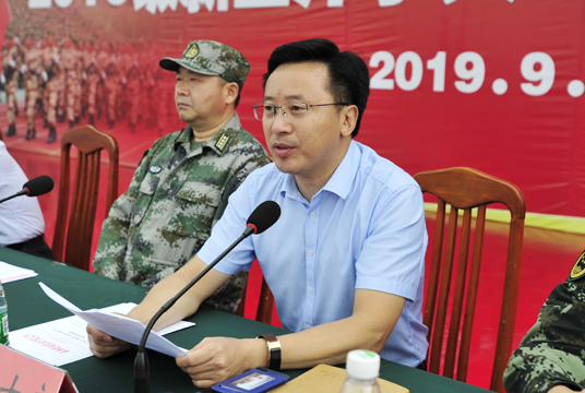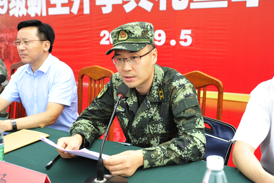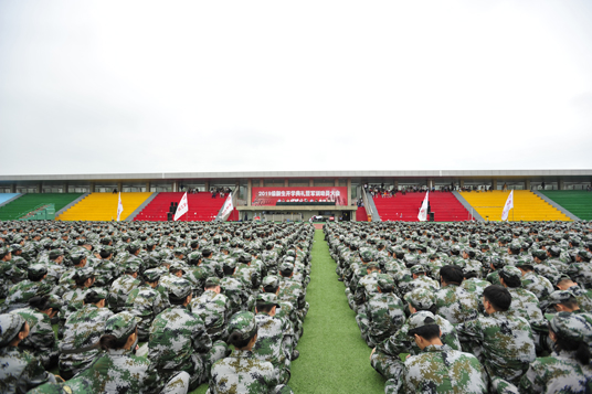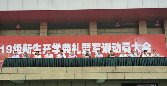 9月5日上午,我院2019级新生开学典礼暨军训动员大会在田径场举行。来自全国10个省(区)的3200余名新同学汇聚在一起,开启人生新航程。泰州军分区司令员韩涛出席大会并讲话,院党委书记陈士宏主持大会并向军训团授旗,院长徐庆国作讲话,武警泰州支队政治工作处主任汤铸出席大会并讲话,院党政班子全体成员出席大会。