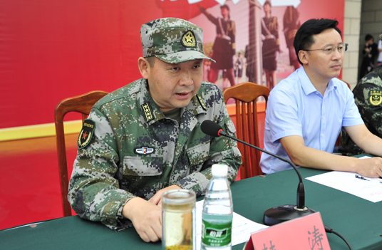 韩涛在讲话中表示,希望泰职院充分利用泰州和学院自身优势,打造泰州市双拥工作的亮点品牌,成为泰州军地建设的示范基地,进一步形成军地融合发展的办学特色。希望武警泰州支队和泰职院进一步加强合作,改革创新,高标准、严要求,战酷热、砺精兵,让军训成为校园一道亮丽的风景,让军训工作成为学院的特色和品牌。希望同学们珍惜军训机会,努力提高军事技能,学习部队优良的传统,立志“当标兵、争第一”。