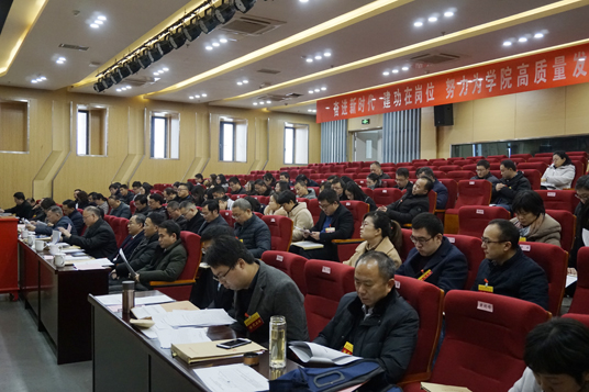 学院党委副书记、工会主席钟文乐作了题为《奋进新时代 建功在岗位 团结动员全院教职工为学院高质量发展作贡献》的工作报告。钟文乐从四个方面对四届工会委员会工作作了回顾,并提出工会今后五年工作的主要任务:一是突出思想引领,建设新时代“四有”教职工队伍;二是突出服务大局,努力为学院高质量发展建功立业;三是突出改革创新,强基固本提升工会自身建设活力;四是突出以人为本,关心维护好教职工合法利益和权益。