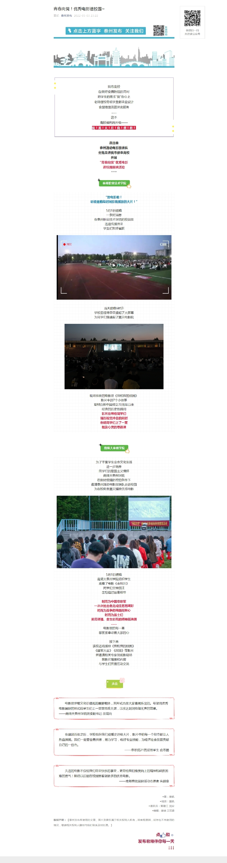 2022年5月4日泰州发布:青春向党!优秀电影进校园_