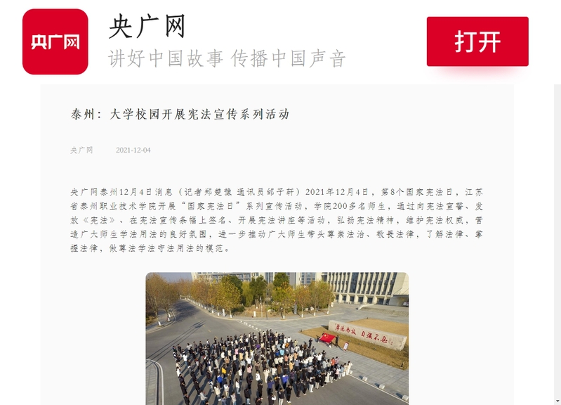 2021年12月4日央广网:泰州:大学校园开展宪法宣传系列活动