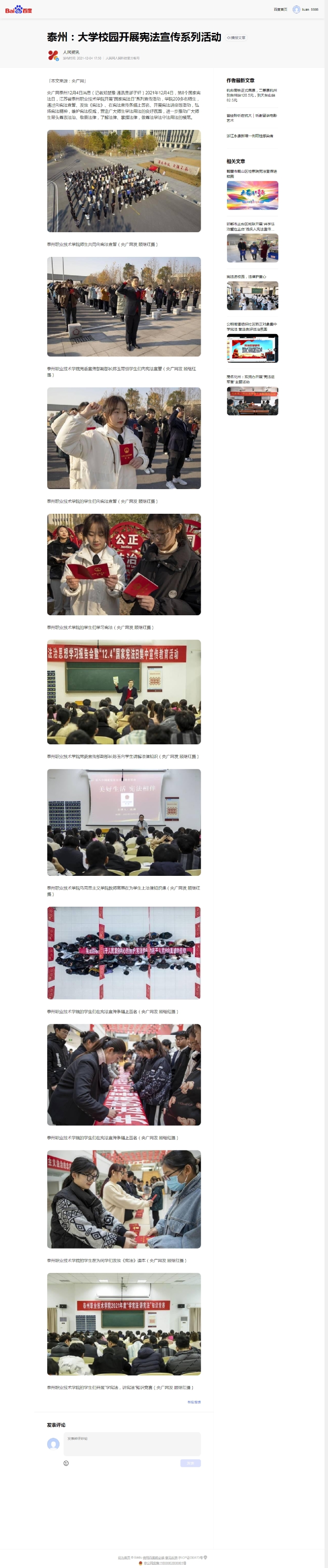 2021年12月4日人民资讯:泰州:大学校园开展宪法宣传系列活动