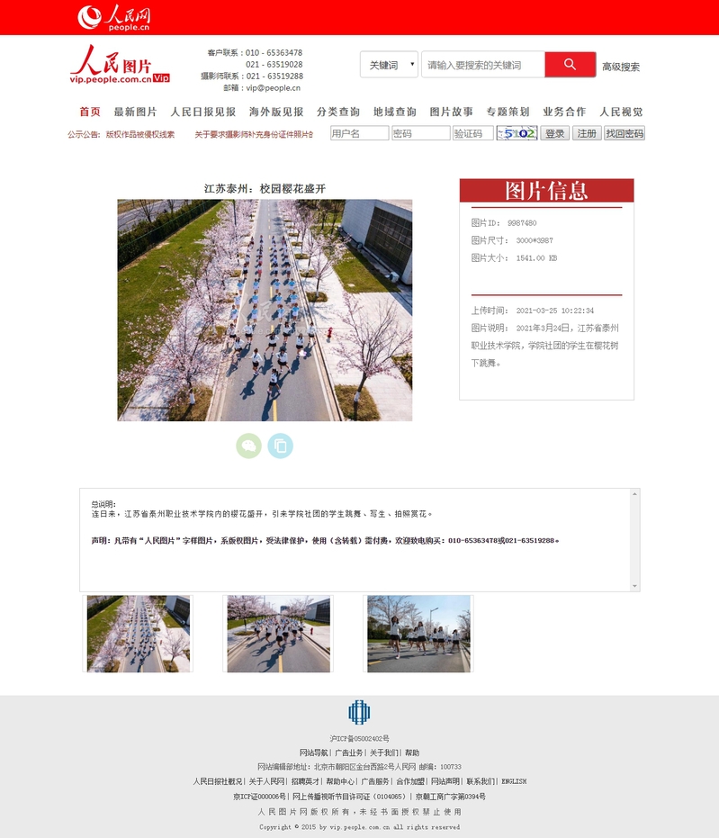 2021年3月25日人民网:江苏泰州:校园樱花盛开-人民图片网