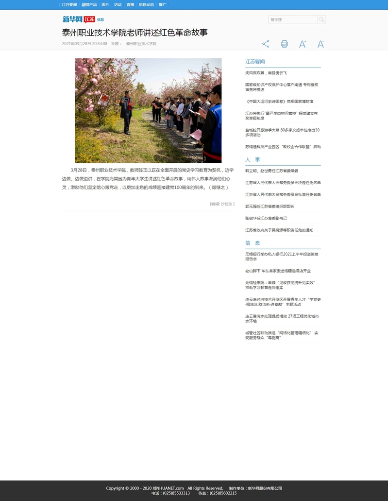2021年3月28日新华网:泰州职业技术学院老师讲述红色革命故事