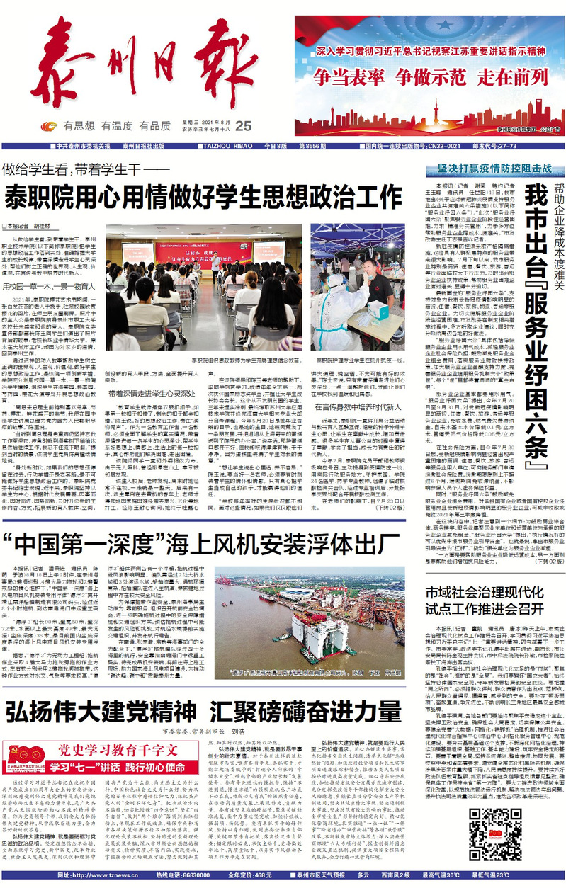 2021年8月25日泰州日报:泰职院用心用情做好学生思想政治工作