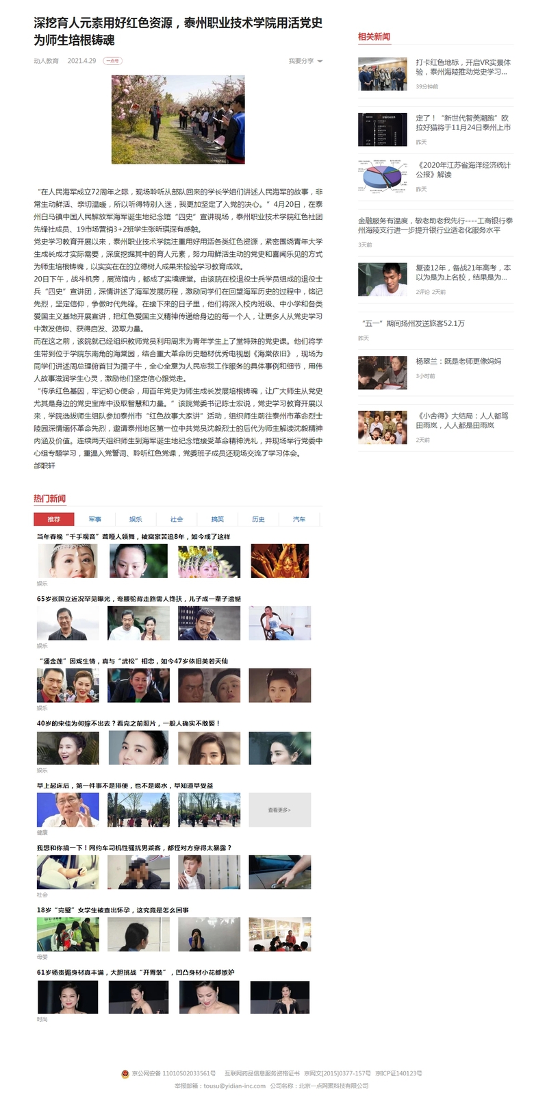 2021年4月29日一点资讯:深挖育人元素用好红色资源,泰州职业技术学院用活党史为师生培根铸魂