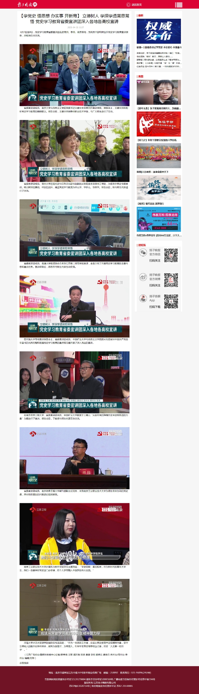 2021年4月11日扬子晚报网:【学党史 悟思想 办实事 开新局】 立德树人 学深学透常思常悟 党史学习教育省委宣讲团深入各地各高校
