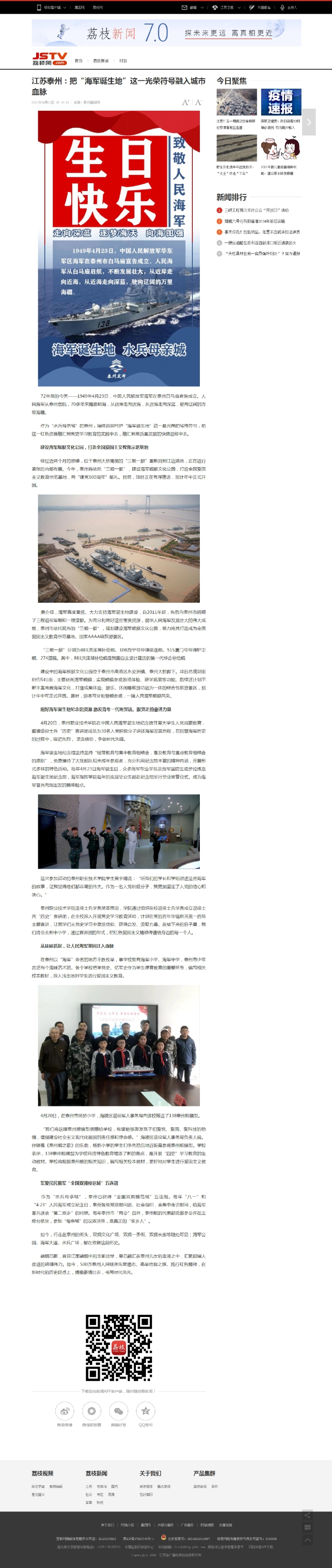 2021年4月23日荔枝网:江苏泰州:把“海军诞生地”这一光荣符号融入城市血脉