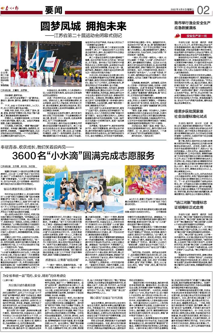 2022年9月6日泰州日报:3600名“小水滴”圆满完成志愿服务