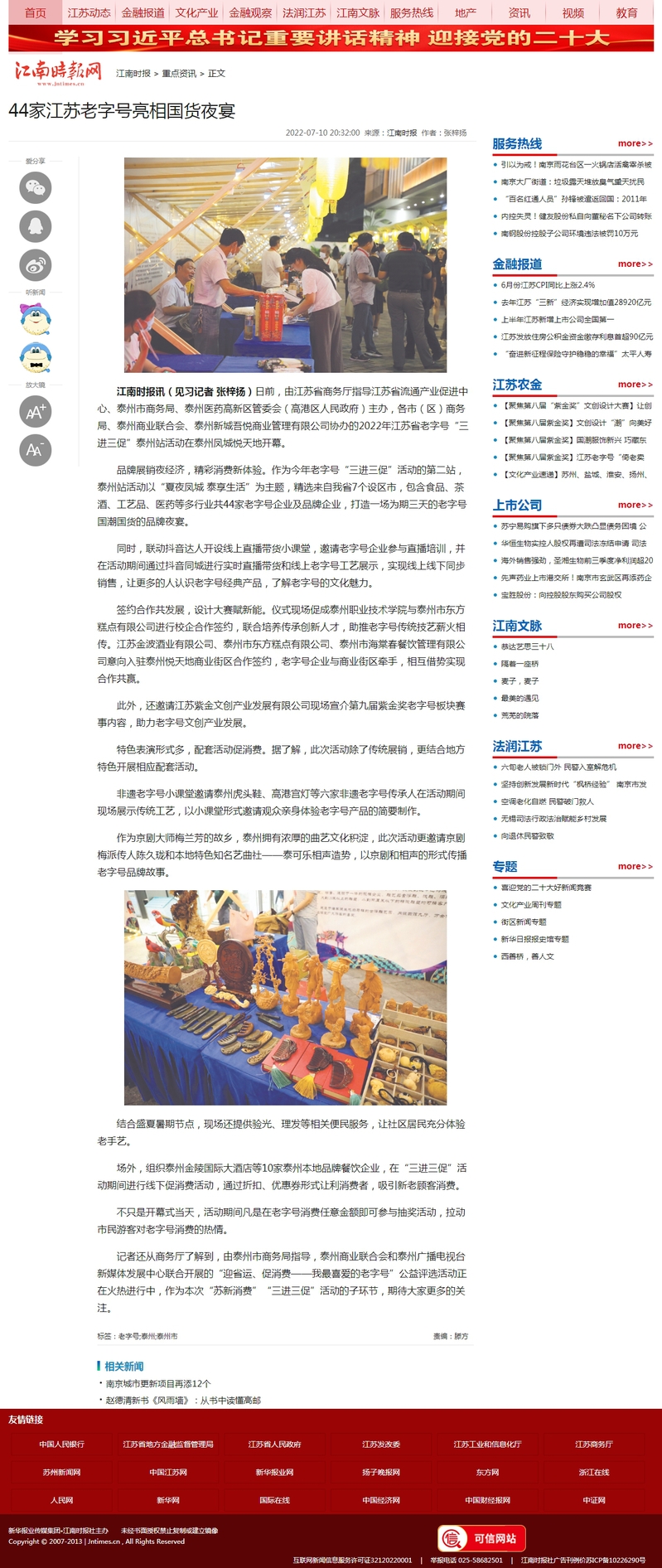 2022年7月10日江南时报:44家江苏老字号亮相国货夜宴