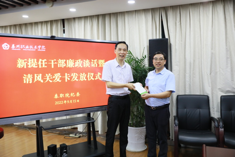 为进一步强化监督专责,创新日常监督举措,推动监督与教育有机融合,让“靠前监督”更加具象、更有温度,不断激发党员、干部廉洁意识、责任意识和担当意识。9月15日上午,学院举行新提任中层正职干部廉政谈话暨“清风关爱卡”发放仪式,为8位新提任的干部送去学关心和督促。