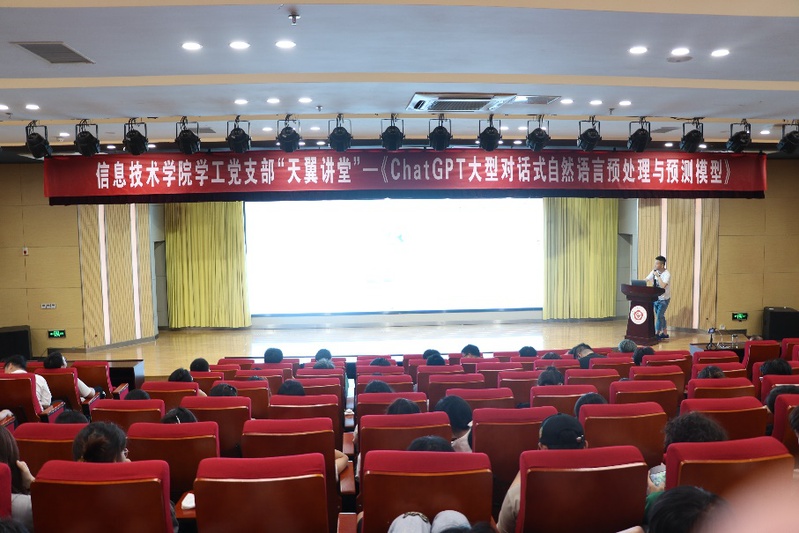 2023年5月15日下午,信息技术学院学工党支部在大学生活动中心举办了主题为《ChatGPT——大型对话式自然语言预处理与预测模型》的新一期天翼讲堂讲座。此次讲座请到了新生网络科技公司总监李太宁为大家主讲。21、22级学生代表参与了该讲座。