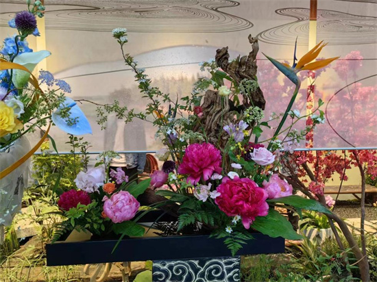 王希晶老师作为艺术插花项目的参赛成员之一,从2022年7月开始便配合泰州市住房和城乡建设局(园林局)积极训练。在前期备赛期间,王希晶老师进行了大量的调研构思,反复揣摩创意方案,为指定主题的中式插花作品做了充分的准备和训练。2023年4月23日,王希晶老师跟随比赛团队前往南京选购参赛花材,第二天进入连云港花博园主展馆,与团队成员凝心聚力,精心布展,顺利完成主展馆展区的创作与布置。