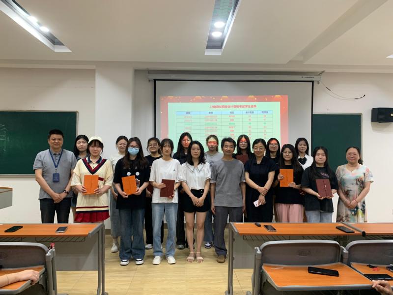 2023年6月16日,经管院会计专业举办了22级初级会计考证表彰大会。经管院党总书记黄明锋、院长韩翔、会计教研室主任朱玉广老师以及全体会计专业学生参加了活动。