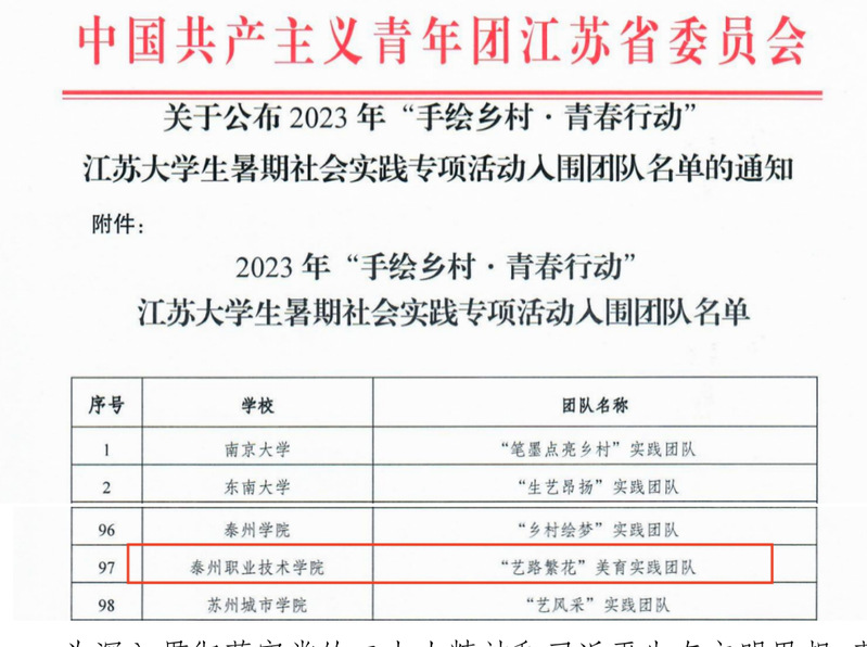 今年6月初,共青团省委联合省青年志愿者协会面向全省开展“手绘乡村”主题墙绘志愿服务活动,艺术学院积极组织宣传、实地考察调研,最终“艺路繁花”美育实践团队成功申报并入围省级团队。