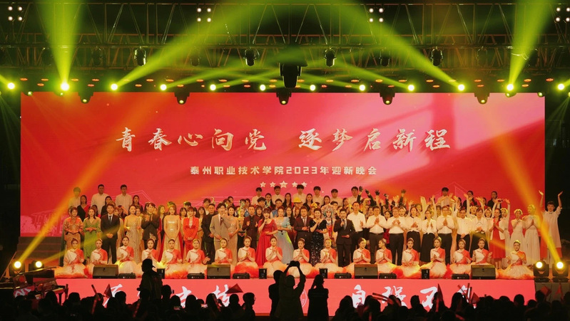 在学校第四次党大会圆满结束之时,举办此次迎新晚会,充分激发了泰职师生团结向上、笃行不怠的精神。今后,全校师生将进一步坚定理想信念,踔厉奋发、勇毅前行,为奋力进入全国一流地方高职院校行列而接续奋斗,为谱写“强富美高”新泰州现代化建设新篇章做出更大的贡献。