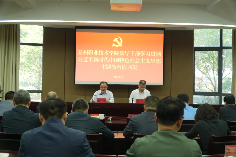 根据市委统一部署和学校主题教育工作安排,10月16日上午,我校在行政楼116举行学习贯彻习近平新时代中国特色社会主义思想主题教育读书班开班式。校主题教育领导小组组长、党委书记张涛作开班动员讲话,市纪委监委第十二派驻组陈林主任到会指导。开班式由校主题教育领导小组副组长、校党委副书记、校长吕林主持。在泰校领导和全体中层正职干部参加开班式,并集中收看主题教育专题学习片《嘱托•奋进》,开班式结束后,全体校领导到307会议室进行集中自学。