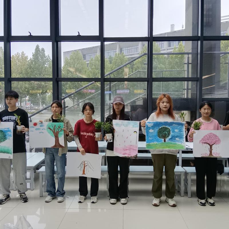 活动当天,现场热闹非凡。在指导老师和志愿者的指引下,同学们纷纷拿起画笔,用五彩斑斓的颜料大胆表达对生命的独特感悟,一棵棵生机勃勃的树木在纸上跃然而出,为现场增添了一抹生命之美。一幅幅画作展现了一派绿意盎然、欣欣向荣的景象,它鼓舞着同学们坚定信心,勇往直前,追逐青春的梦想,挥洒青春的汗水。绘画结束后,同学们纷纷与认养的希望树和画作合影。