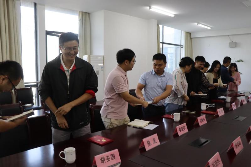 受聘导师向青年教师回赠书籍。