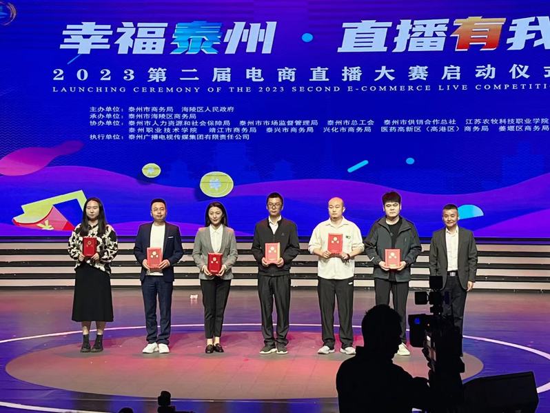 10月23日,由泰州市商务局和海陵区人民政府主办的“幸福泰州·直播有我”泰州市第二届电商直播大赛启动仪式正式举行。泰州市商务局党组成员、二级调研员、市贸促会会长唐驰,海陵区政协副主席、区商务局局长施庆出席并致辞。我校经济与管理学院院长韩翔受邀参加启动仪式,市人社局、市市监局、市总工会、市供销总社、江苏牧院、各市(区)商务局负责同志和市内电商企业代表参加启动仪式。