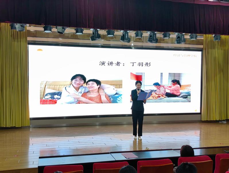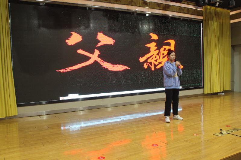 讲故事环节中,两名同学饱含深情地讲述了全国道德模范刘羲檬“带着妈妈上大学”和在校大学生为姥爷手绘智能手机操作图的故事,希望同学们都能传承孝老爱亲的精神,为社会道德建设树立起优秀的榜样形象,贡献属于属于我们自己的青春力量!