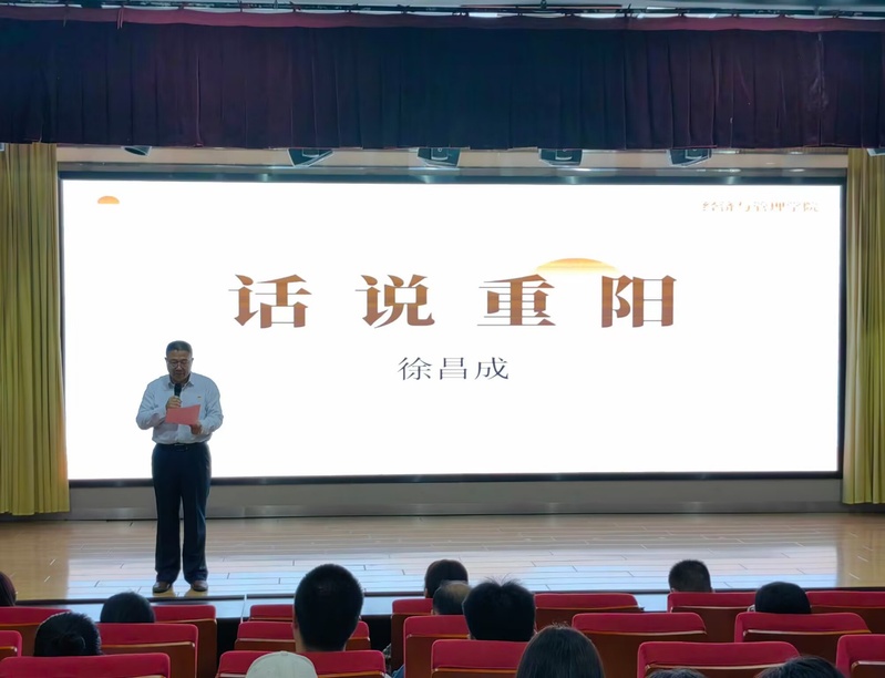 经管院党总支副书记徐昌成作了重阳文化宣讲,他说尊重老人、爱护老人和孝敬老人是传统的美德,是社会的责任,本次活动的主旨一是过好传统节日,二是传承优秀传统文化,并号召同学们能够弘扬敬老、爱老、护老、孝亲的传统美德。