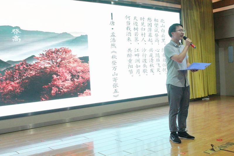 师生代表声情并茂地诵读关于重阳节的诗词,向我们展示了古代文人的壮丽诗篇,在聆听、诵读经典诗词的同时,深受传统文化的熏陶,看到了历史文化的悠久与灿烂,体会古人对重阳节的看法与情感,更感受到悠悠的敬老心。