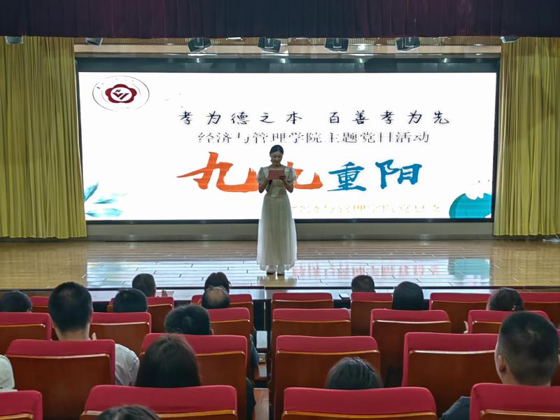 10月23日是中国传统节日重阳节,为了培育和践行社会主义核心价值观,更好地利用传统节日弘扬中华优秀传统文化,经济与管理学院在大学生活动中心105举办了“孝为德之本,百善孝为先”主题党日活动,经管院全体党员教师和48、49期入党积极分子一同接受传统文化的熏陶。经管院关工委常务副主任倪亚兰出席了活动。