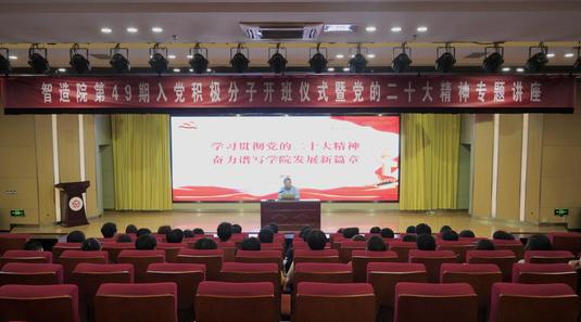 2023年10月26日晚,智能制造学院举办第49期入党积极分子开班仪式暨党的二十大精神专题讲座,进一步加强入党积极分子理想信念教育,旨在使其不断端正入党动机,提升政治素养,明确努力方向。学院党总支书记严杰出席开班仪式,第49期入党积极分子、2023级学生骨干参加培训。
