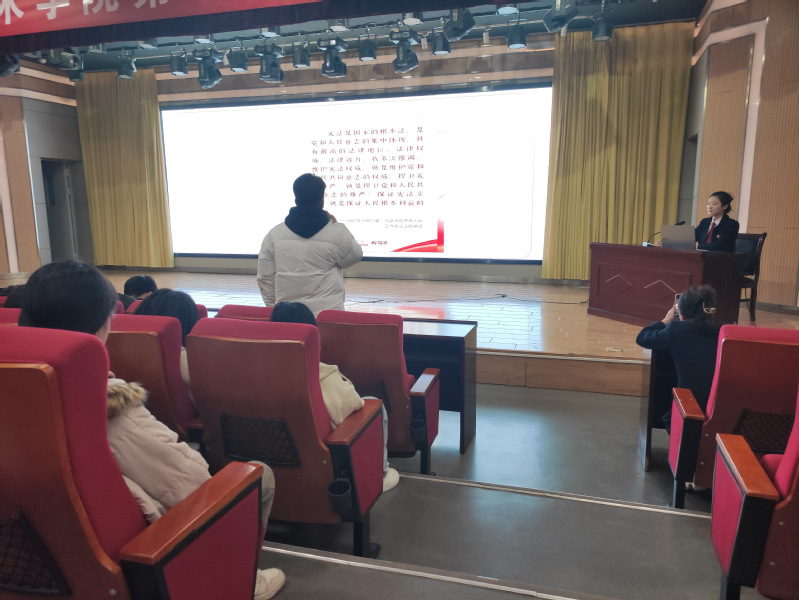 为全面提升基层普法工作实效,切实增强在校大学生的法律知识应用能力及安全防范意识,进一步加强法治校园建设,在第十个国家宪法日到来之际,靖江法院来我校经济与管理学院开展了校园普法宣传活动。