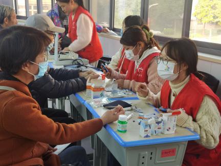 实践活动中,教工支部陈涓老师为社区居民讲授了一堂“秋冬季节常见传染病及预防”的知识讲座,并通过现场演示,指导老年人群掌握正确的个人健康防护技能;学生支部教师和入党积极分子运用所学知识技能,为社区居民开展血压、血糖等常规健康检测服务;在讲座和健康检测的过程中,师生热情与社区居民互动,尤其面向一些老龄人群时,师生始终以热情的态度、耐心的方式、专业的操作为老龄人群做演示和讲解,受到社区干部和群众的好评和欢迎。