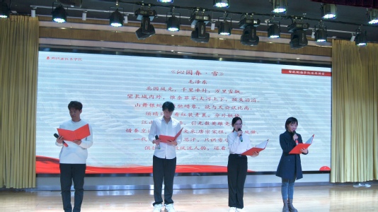 随后,讲解员沙莎领读伟大先辈们留下的古诗词《沁园春·雪》、《七律人民解放军占领南京》、《与八路军南下部队会师,同志中有十年不见者》,23级智控班冯绮婷、23级数控3+3班丁益舜,教师代表马俊跟读。在声声诵读中,我们沿着诗词的长河重走英雄来路,追寻他们伟大的足迹,开拓我们人生的视野。