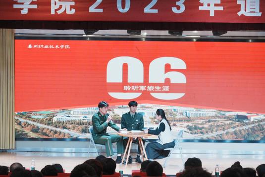 一身戎装,一腔热血,放飞传递和平的梦想,学院团委老师欧习对退役复学同学代表钱啸宇、周泽恩进行访谈,带领大家走进了他们精彩的军旅生涯。精彩的道德讲堂在领导和嘉宾的合影中圆满落下帷幕。
