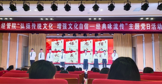 为弘扬中华优秀传统文化,推进文化自信自强,引导青年学生未来以昂扬的姿态投身全面建成社会主义现代化国家的建设,12月11日下午,经济与管理学院在大学生活动中心105报告厅举办了 “弘扬传统文化 增强文化自信——经典咏流传”主题党日活动。经管院全体党员老师、入党积极分子以及各班级代表共计100余人参加了本次活动。
