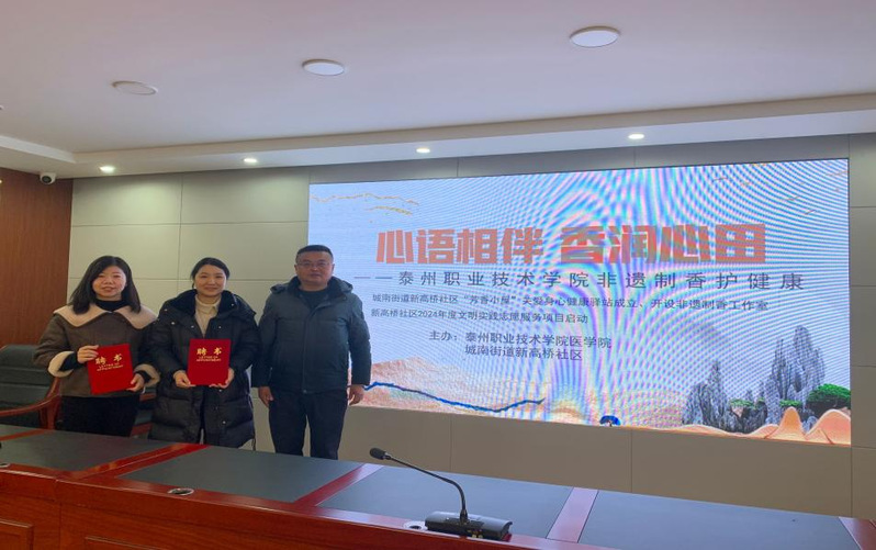 泰州职业技术学院医学院与泰州新高桥社区共建非遗香文化传承工作室,不仅为社区居民提供了一个文化交流的平台,也为非遗文化的传承与发展注入了新的活力。未来,双方将继续深化合作,推动非遗香文化在更广泛的范围内传播,为构建和谐社区、培育文化自信贡献力量。