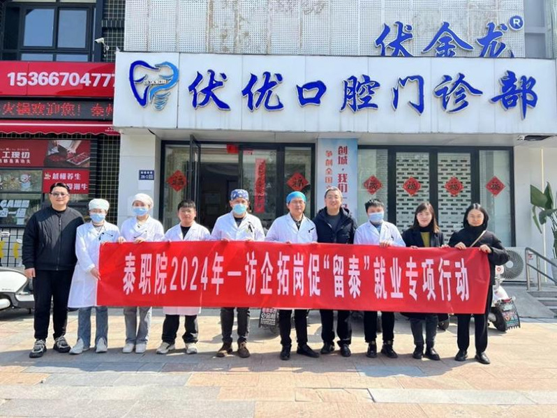 为进一步拓宽留泰就业渠道,促进毕业生高质量就业,2024年3月9日,医学院周涛院长、副书记张丽带队前往泰州伏优口腔门诊部开展“访企拓岗促留泰就业”活动,口腔系副主任宋毅、口腔医学和口腔医学技术毕业班班主任顾志琴、袁雪峰老师参加本次活动。