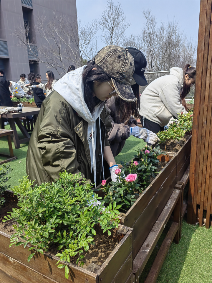 劳动现场,同学们热情满满,干劲十足,积极参与,松土、挖坑、植花、覆土、浇水、清扫,每一个步骤都井然有序欢声笑语中,大家共同许下了春日里的美好愿望,孕育在花朵中等待盛放。
