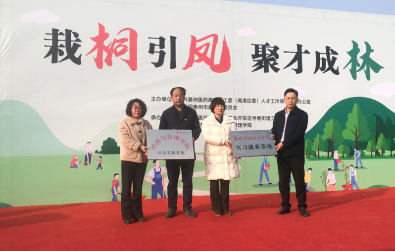 3月11日“植树节”到来之际,经管院党总支书记韩翔、院长陈玉带领经管院30余名教师和300余名同学参与了泰州医药高新区工委人才办举办的“栽桐引凤,聚才成林”人才专项活动,同时在活动中,经管院与泰州海达塑胶包装有限公司还举行了实习实训基地签约授牌仪式。