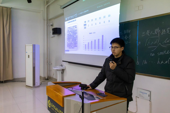 郭新胜首先通过分享一个问题:大家为什么会选择我们这个专业,切入主题。他向大家分享了三点他的学习经验:1.逐渐培养对专业的热爱和兴趣;2.课堂的前中后也很重要,抓住了课堂,学习就会事半功倍;3.要有延展性,在学习完学校课程后,可以将自己的所学内容应用于实践。