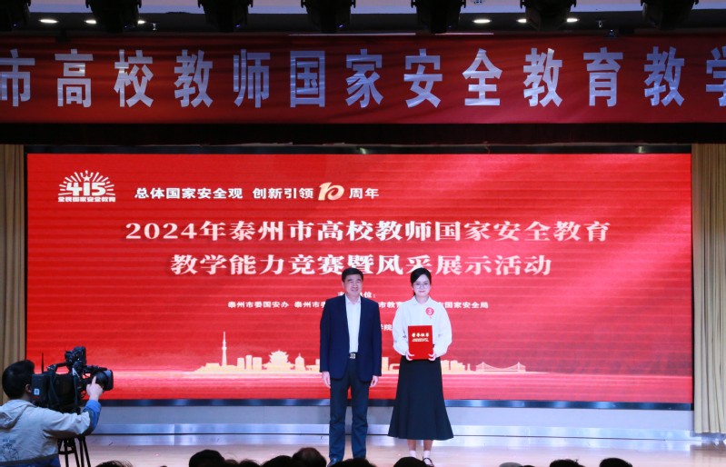 此次活动得到了在泰各高校的大力支持和积极参与,经过前期的层层选拔,最终有7名选手进入到决赛环节。比赛中,各位参赛选手围绕总体国家安全观的外延与内涵进行深入剖析,他们精神饱满、教态自然,语言生动流畅,既有理论阐述,又有案例分析,使得抽象的国家安全观念变得具象而生动,充分展示我市高校教师深厚的理论功底和专业素养。经过激烈的角逐,我校卢星屹老师凭借扎实的教学素养和稳定的发挥,赢得了评委们的一致好评,荣获一等奖,我校获优秀组织奖。