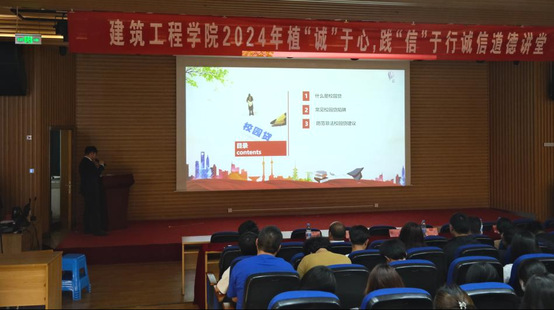 为贯彻落实党的二十大精神,强化学生牢固树立诚信为本的意识,引导学生树立优秀诚信品质,努力成为有责任、有担当、践诚信的优秀青年,5月22日下午,建筑工程学院组织开展植“诚”于心,践“信”于行主题道德讲堂。校宣传部副部长蔡俊璐、学工处副处长陈蓉、院党总支副书记叶伟、院关工委主任杨政等参加了本次活动。