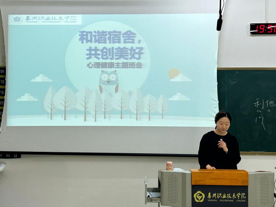 主题班会由23计算机3+2班心理委员刘心语制作,辅导员李老师开展,分为“班级破冰”、“班级宿舍公约展示”、“宿舍关系小课堂”和“学校心理健康资源介绍”四个部分。在破冰部分同学们通过“成语接龙”和“击鼓传花”,增强了班级和宿舍的集体凝聚力。在宿舍公约部分,同学们认真聆听,以宿舍为单位仔细研讨,建立了一个个大家认可的公约,在研讨过程中也更加深入了解各自的生活习惯和底线要求等,学会了用心会友,以温语浸润心田,同育友谊之花,共筑暖心宿舍。在心育资源展示中更加了解我校的心理健康资源和使用渠道。