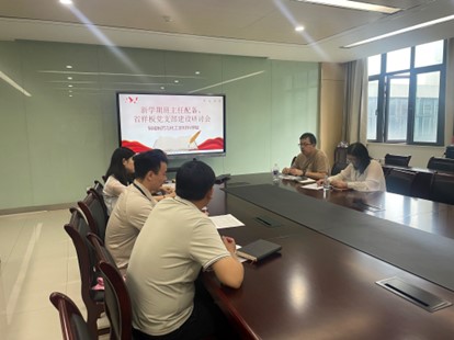 6月19日下午,智药院学工办在会议室210召开例会,会议内容为新学期班主任配备及省样板党支部建设研讨,学院学工办党总支副书记曹晖、学工办主任周琳及全体辅导员参加会议,会议由曹晖书记主持。