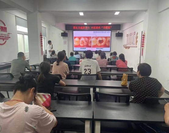 活动中,口腔医学专业党员朱加林老师精心准备了口腔基础知识专题讲座,并用通俗易懂的语言向社区居民特别是老年人进行了口腔健康宣传教育。他围绕老年人常见多发的口腔疾病,通过图片展示、现场观视,深入浅出地讲解了牙周疾病的临床表现及对身心健康的潜在危害,指出牙周疾病与心血管疾病、糖尿病等慢性病密切相关,不容忽视,不及时治疗甚至会引发全身性疾病。同时,也就如何有效预防和应对这些口腔问题,他倡导要合理清洁口腔及牙齿、定期进行口腔检查,同时,还强调了合理饮食的重要性,鼓励大家减少高糖、高酸食物的摄入,多吃富含纤维的蔬菜水果,以维护口腔健康。