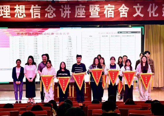 活动最后,艺术学院党总支书记毛斌对本次讲座及推进会进行了总结。他强调,理想信念是人生的航标,广大新生同学在进入大学学习的启航阶段,要树爱党情、立报国志,将个人的理想融于中华民族伟大复兴的中国梦,以家国情怀勤学善思,练就本领,为中国式现代化贡献青春和力量。他强调,我们常以“一屋不扫何以扫天下”的豪情明志,艺术学院常态化开展的宿舍文化建设的内涵,就是通过全体同学的积极参与,将宿舍打造成为“洁净、和谐、文化、学习”之家,让宿舍成为广大同学成长成才的阵地,一月一评比推行流动红旗的目的,就是将流动红旗作为同学们争当先进、勇做优秀大学生的一项检测手段,让我们均有成为标杆与榜样的机会,聚焦保红旗、争红旗促进和推动艺术学院学风、院风的优化与提升。希望学院师生以此次讲座和推进会为契机,进一步提高思想认识,坚定理想信念,营造和谐的宿舍文化氛围,深入推进宿舍文化建设,充分发挥宿舍文化建设在人才培养中的重要作用。