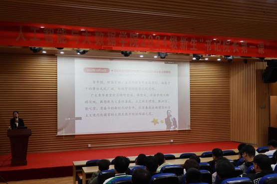 四时俱可喜,最好新秋时。10月23日下午,人工智能与大数据学院在图书馆一楼报告厅举行了2024级新生书记院长第一课,本次活动共分为三个会场。党总支书记段艳艳、院长杨绚渊、副院长杜庆平、计算机教研室主任蔡伯峰、电子教研室副主任李平、大一大二年级班主任老师和所有同学们共同参加了本次活动。