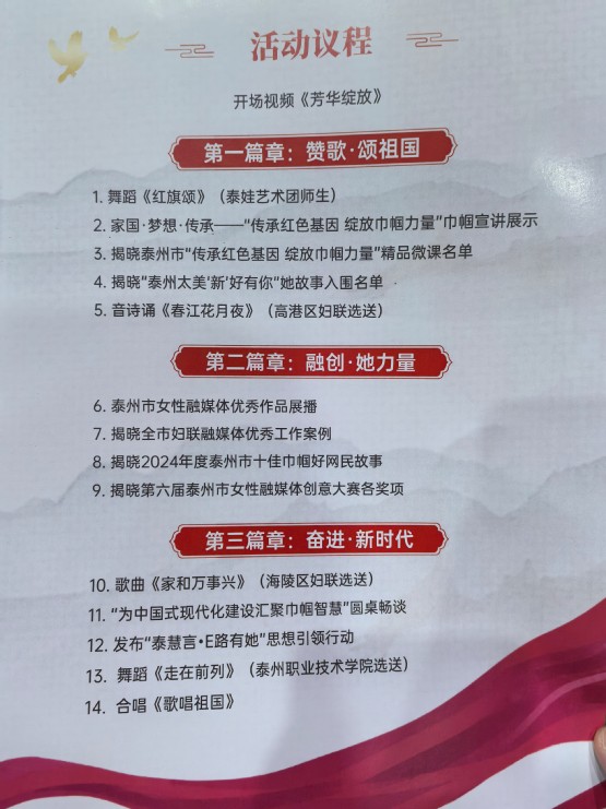 金秋送爽、丹桂飘香,泰州妇联组织了一场别开生面的“强国复兴有我”主题活动。活动在市委宣传部、市委统战部、市委网信办及省妇联新媒体中心的精心指导和大力支持下,汇聚了来自各行各业的优秀女性代表,她们以饱满的热情和昂扬的斗志,共同见证了这一激动人心的时刻。活动现场气氛热烈,掌声雷动,每一位参与者都沉浸在浓厚的家国情怀之中。